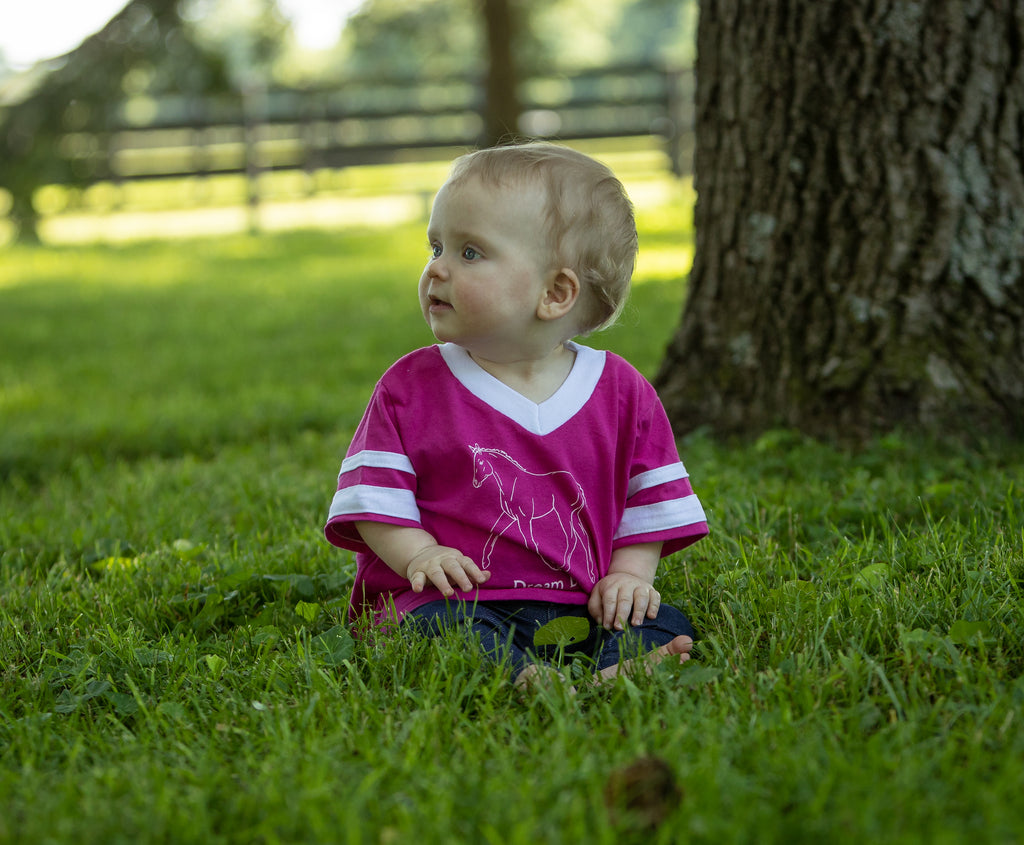 A cute toddler size shirt that features a custom screen-printed foal design and our farm's tagline. "Dream Big"!